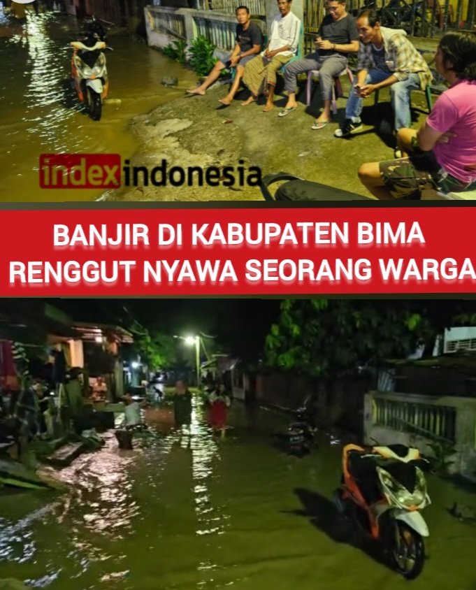 Bima ( Indexindonesia.com ) – Banjir dilaporkan telah merenggut seorang warga dan berdampak pada 1.835 jiwa di Kabupaten Bima, Provinsi Nusa Tenggara Barat, Sabtu (1/4). Peristiwa ini terjadi setelah hujan dengan intensitas tinggi mengguyur wilayah tersebut.
