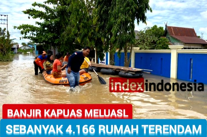 JAKARTA ( Indexindonesia.com )- Banjir yang melanda wilayah Kabupaten Kapuas, Kalimantan Tengah, semakin meluas setelah hujan dengan intensitas tinggi masih sering terjadi dan memicu luapan DAS Kapuas. Data per 1 April 2023 pukul 21.00 WIB, sebanyak 4.166 rumah di 14 desa terendam banjir dengan tinggi muka air (TMA) 40-130 sentimeter.