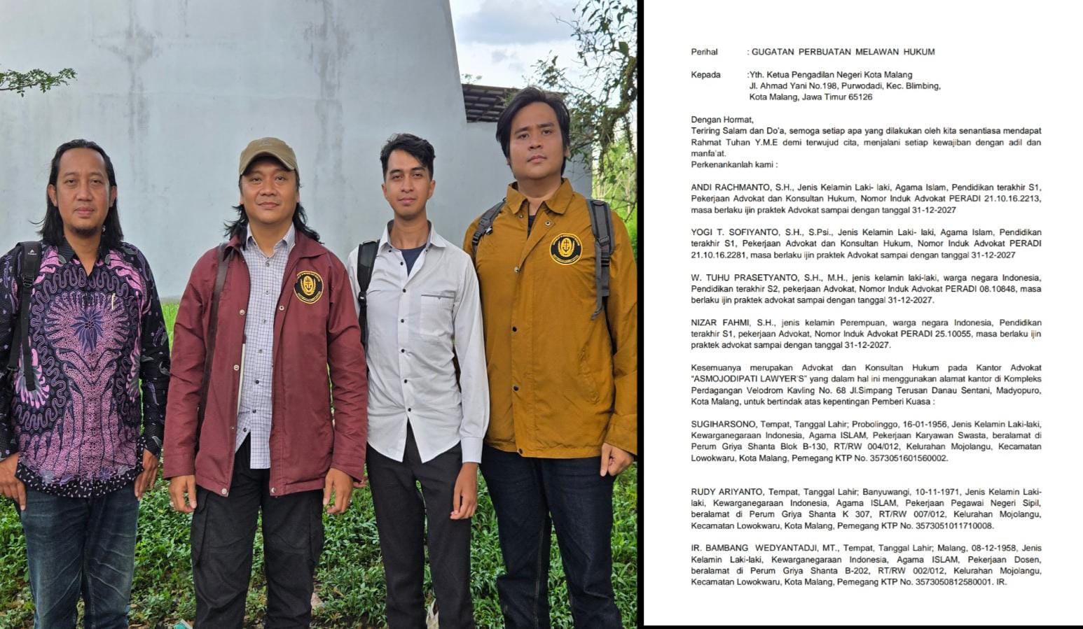 Tim Kuasa Hukum dari Kantor Advokat ASMOJODIPATI LAWYER’S, yang mendampingi warga, memberikan penjelasan mendalam mengenai dasar gugatan.