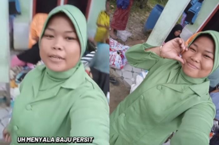 “Uh menyala pakai baju persit,” ujar wanita itu sampai melempar senyuman ke arah kamera.