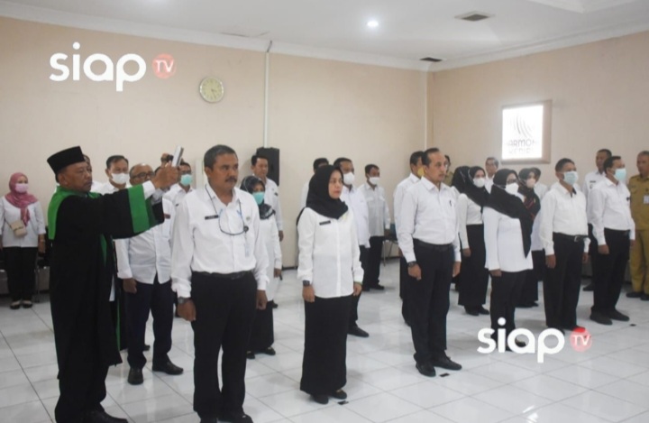 Siaptv Kediri—Wali Kota Kediri Abdullah Abu Bakar melantik sekaligus mengambil sumpah jabatan 21 pejabat struktural dan 3 pejabat fungsional, Selasa (25/10). Pelantikan ini dilaksanakan di Ruang Kilisuci Balaikota Kediri.